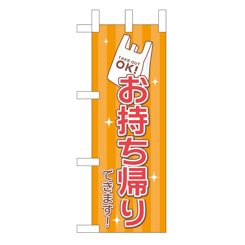 商品の持ち帰りができることをアピールするミニのぼりです