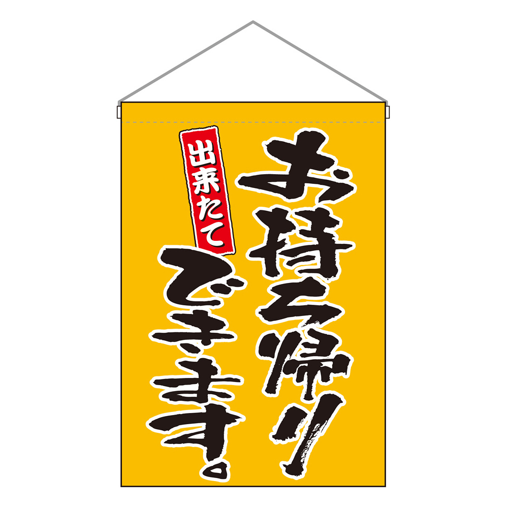 商品の持ち帰りができることをアピールする吊り下げ旗です