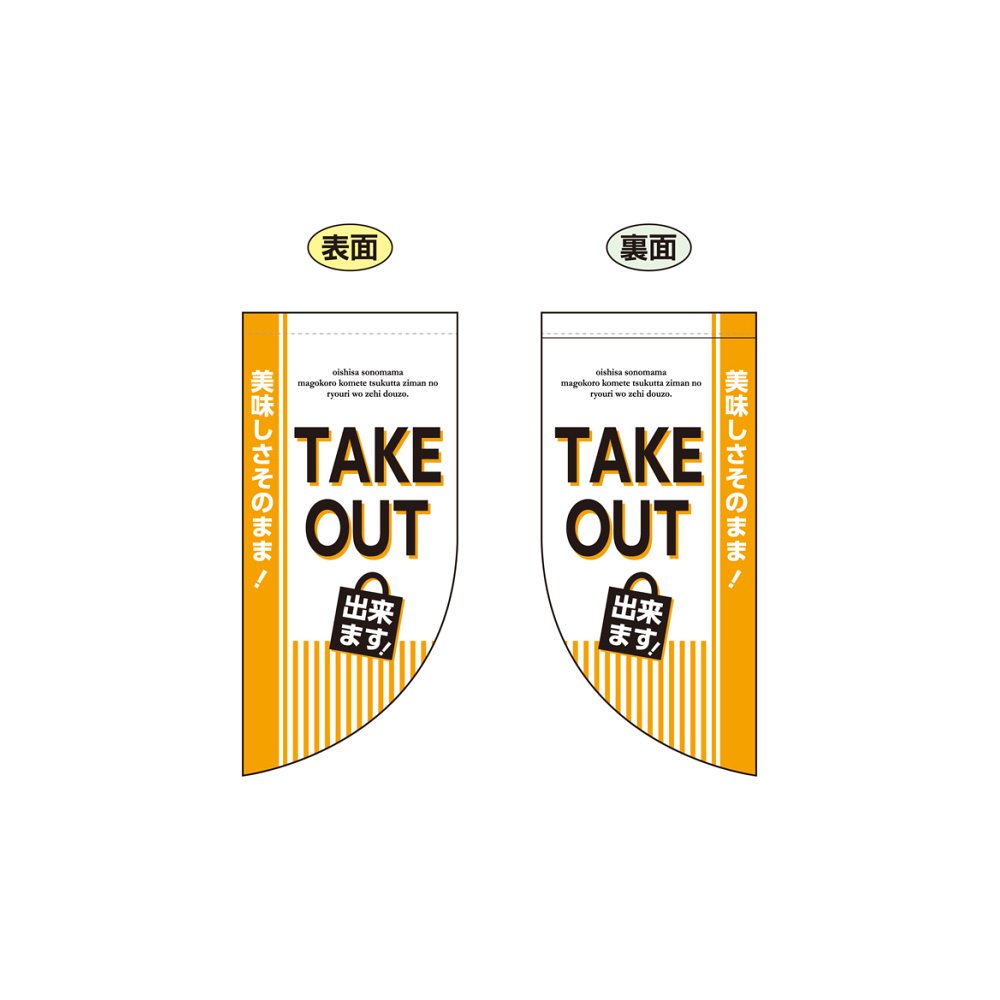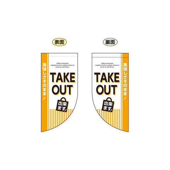 商品の持ち帰りができることをアピールする両面ミニフラッグです