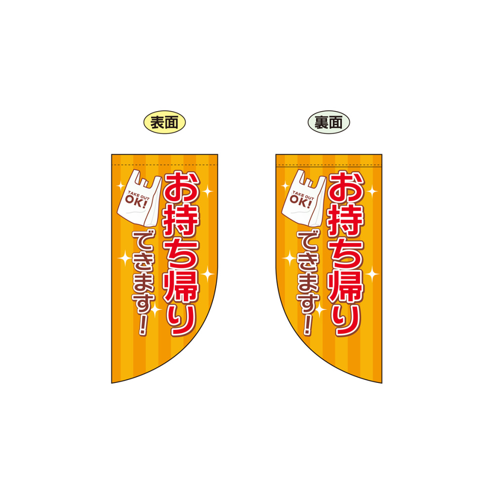商品の持ち帰りができることをアピールする両面ミニフラッグです