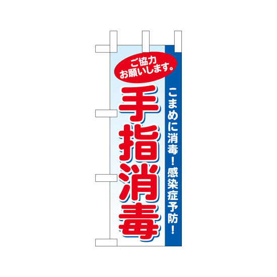 商品説明:ミニのぼり旗 (43426) W100×H280mm 手指消毒 水色地