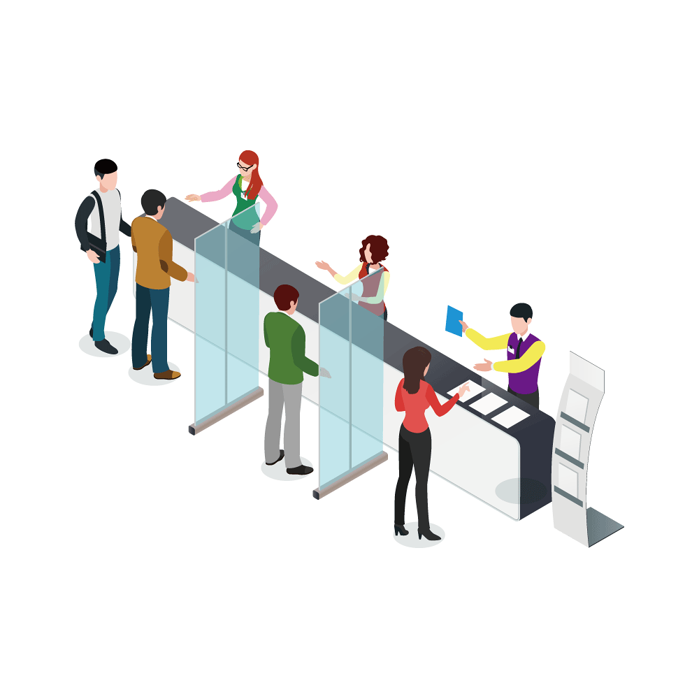 ■受付カウンターで並ばれるお客様同士の間仕切りパーテーションとして。