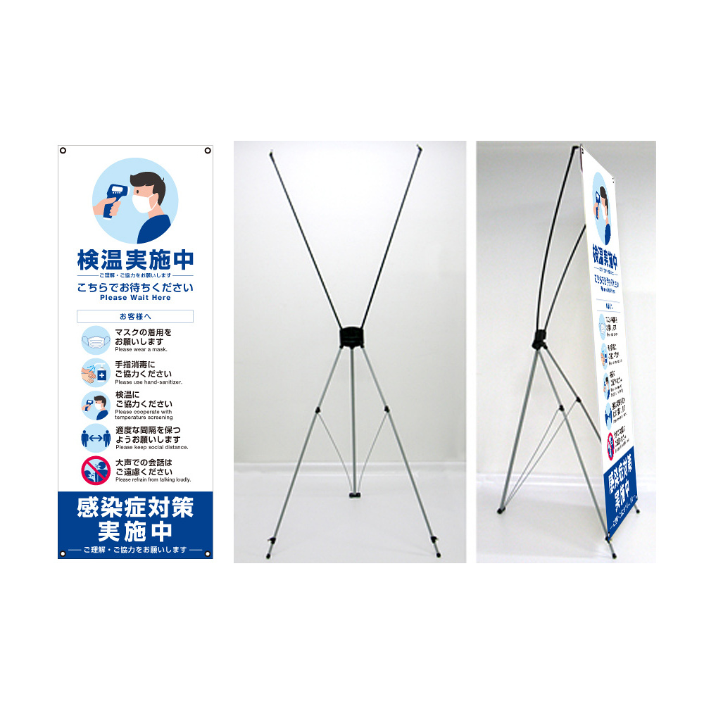 感染症予防を促すバナースタンド。ハトメ付き印刷幕付属で簡単に設置できます。