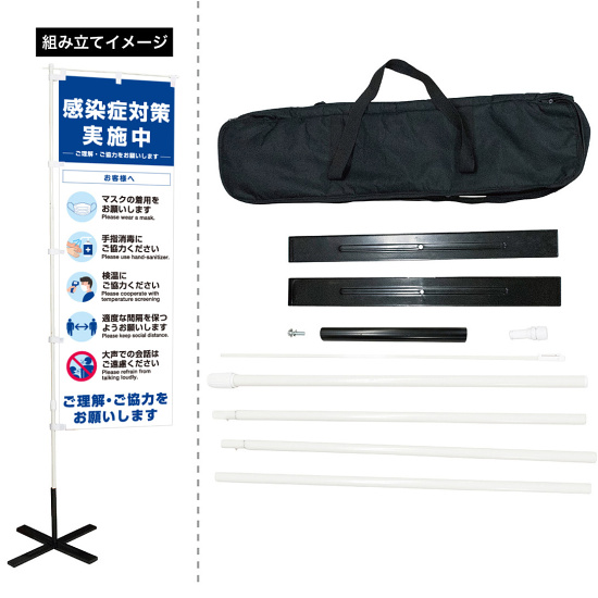 感染症予防を促すのぼり旗にポール・台が専用バックに入ったオリジナル商品
