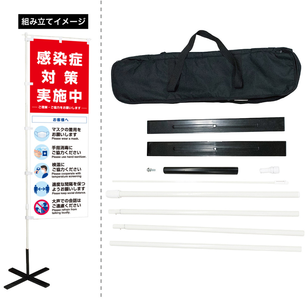 感染症予防を促すのぼり旗にポール・台が専用バックに入ったオリジナル商品