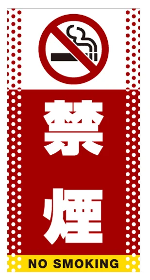 - 禁煙をしっかりアピール。ピクトマーク付でわかりやすい。目立つドット柄デザイン。