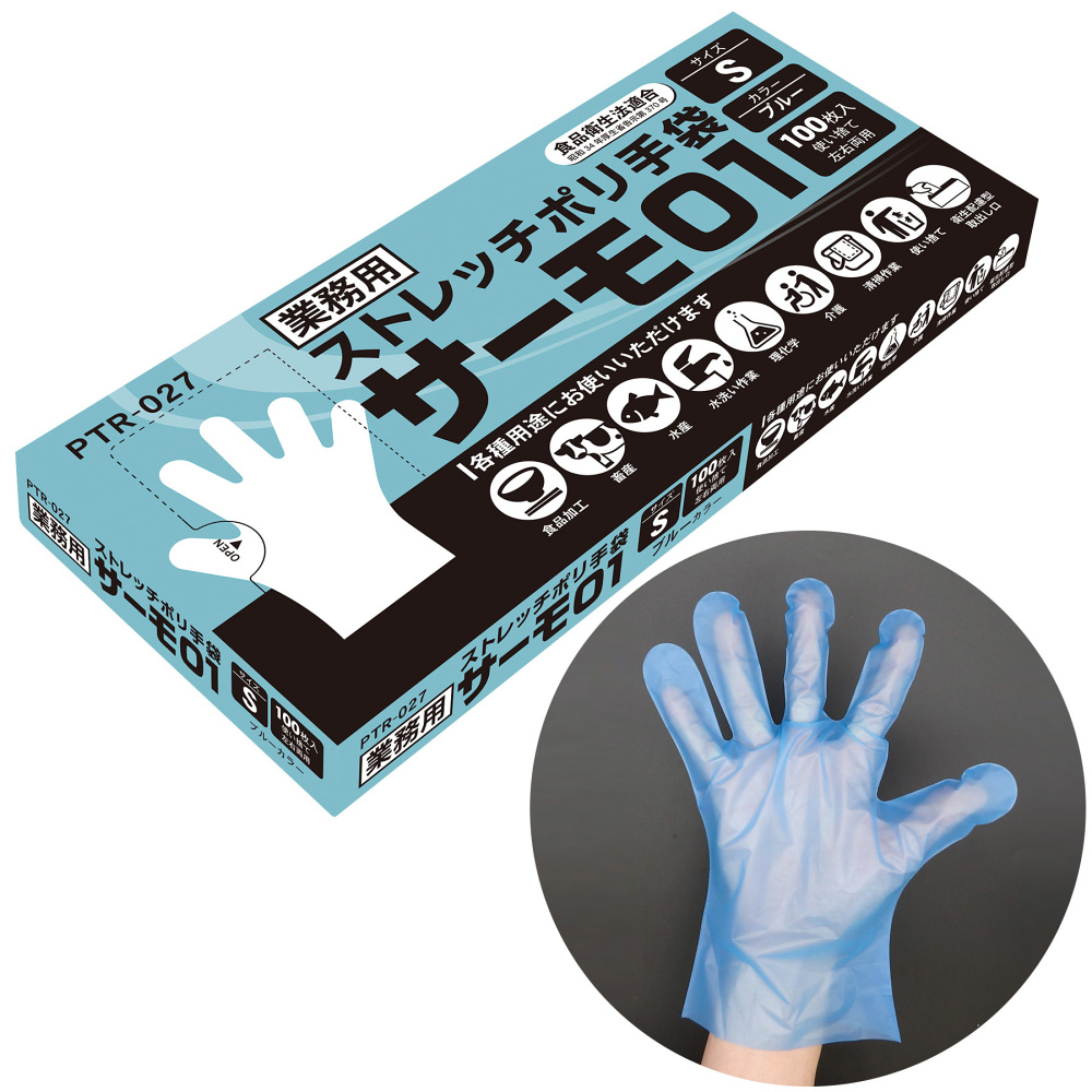 食品衛生法適合 ソフトプラスチック ストレッチポリ手袋(TPE製) 6000枚入 ブルー Sサイズ