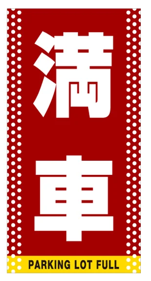 - ドライバーからも見えやすい大きな文字の満車看板。目立つドット柄デザイン。