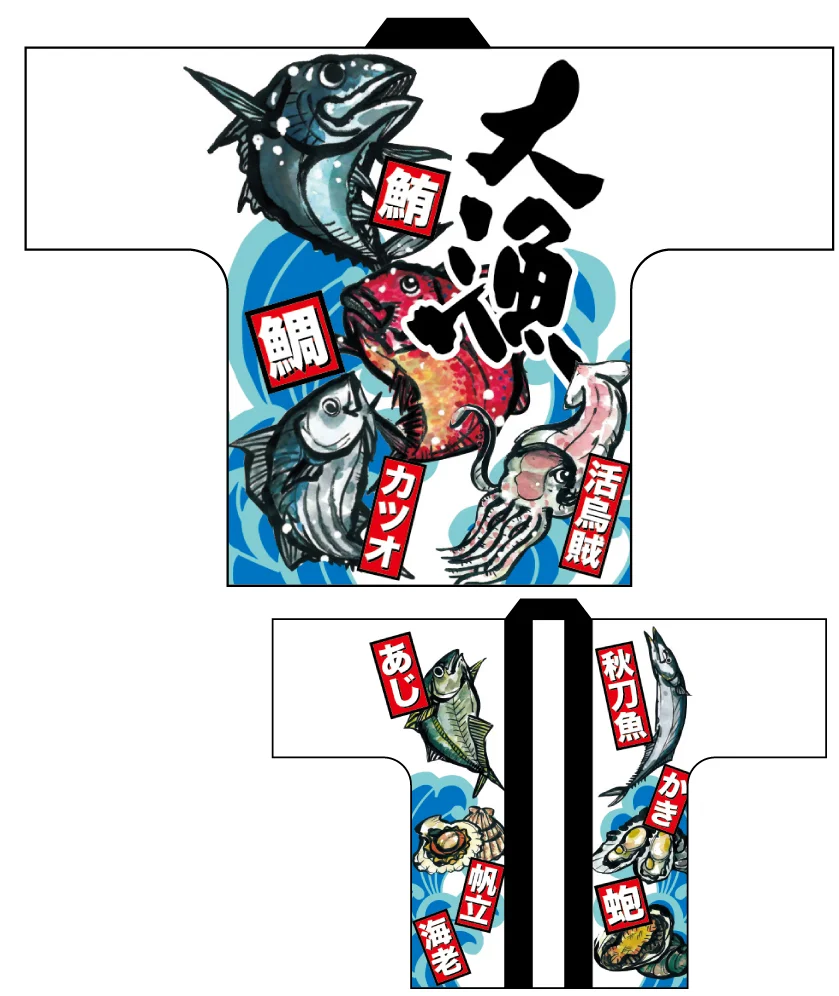 「フルカラーハッピ 13414 大漁 (受注生産)」の導入をご検討中ですか? 大量注文・複数台のご検討に応じたお見積りのご相談、最短納期や送料、仕様・サイズの確認など、 半被(はっぴ)選びをまとめてサポートいたします。