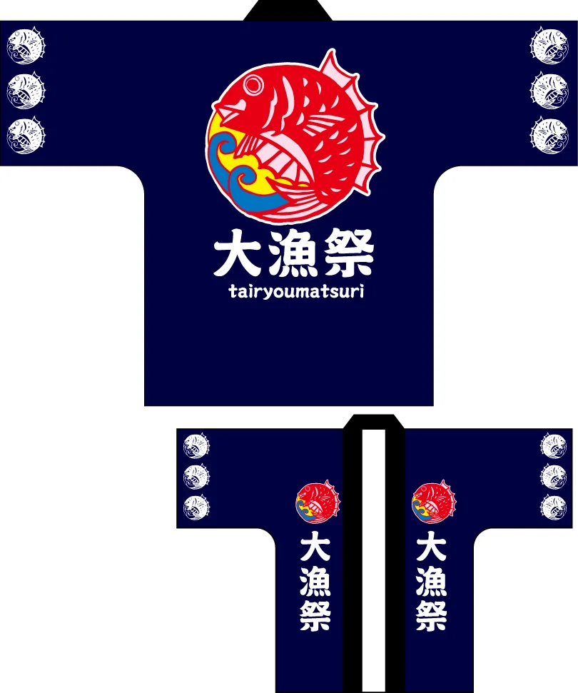 「フルカラーハッピ 13416 大漁祭 (受注生産)」の導入をご検討中ですか? 大量注文・複数台のご検討に応じたお見積りのご相談、最短納期や送料、仕様・サイズの確認など、 半被(はっぴ)選びをまとめてサポートいたします。