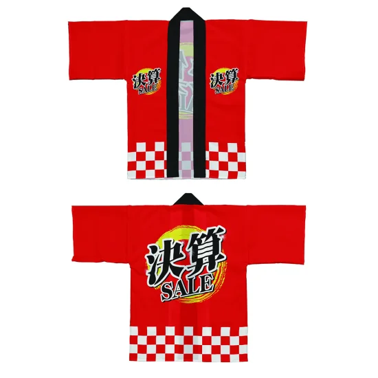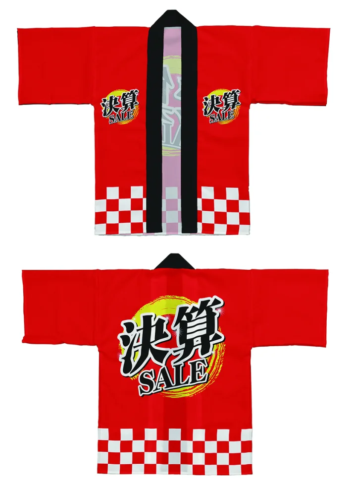 「フルカラーハッピ 64201 決算SALE赤 (受注生産)」の導入をご検討中ですか? 大量注文・複数台のご検討に応じたお見積りのご相談、最短納期や送料、仕様・サイズの確認など、 半被(はっぴ)選びをまとめてサポートいたします。