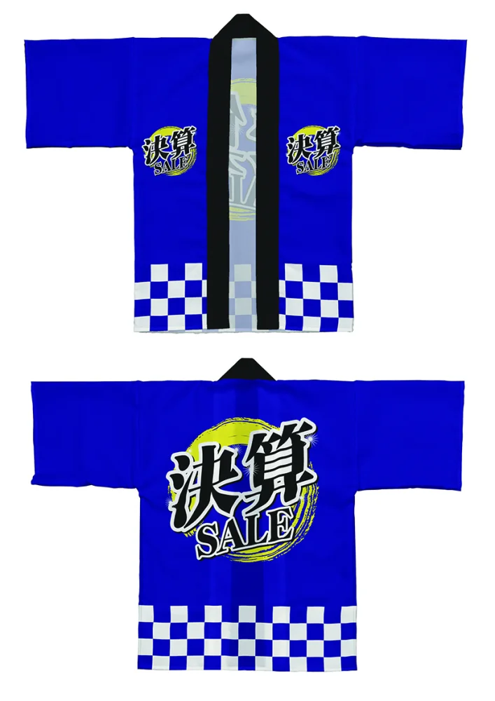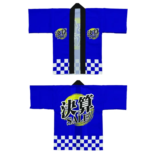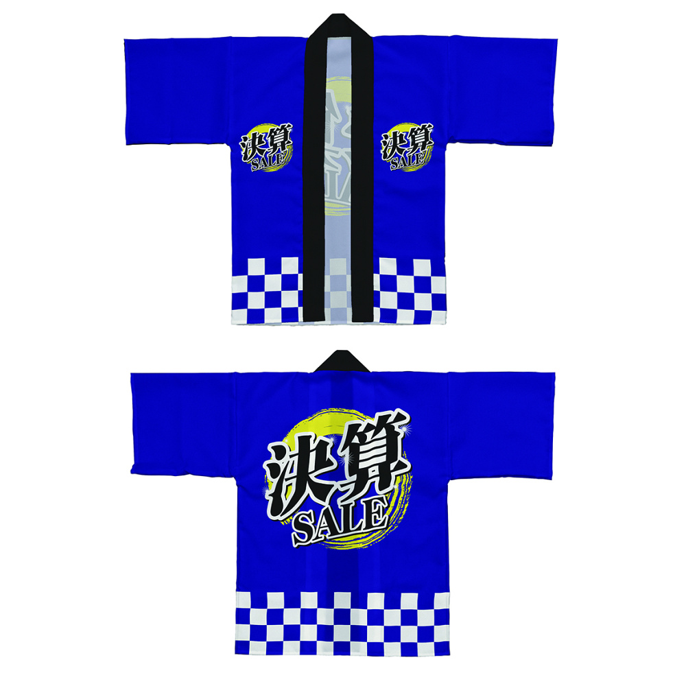 「フルカラーハッピ 64202 決算SALE青 (受注生産)」の導入をご検討中ですか? 大量注文・複数台のご検討に応じたお見積りのご相談、最短納期や送料、仕様・サイズの確認など、 半被(はっぴ)選びをまとめてサポートいたします。