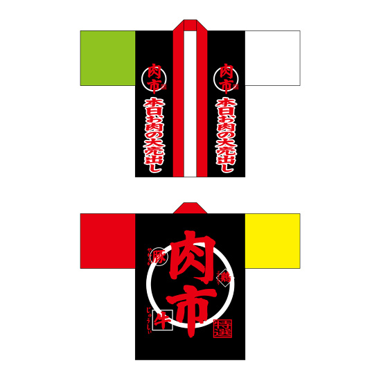 商品説明:フルカラーハッピ 68725 肉市 (受注生産)