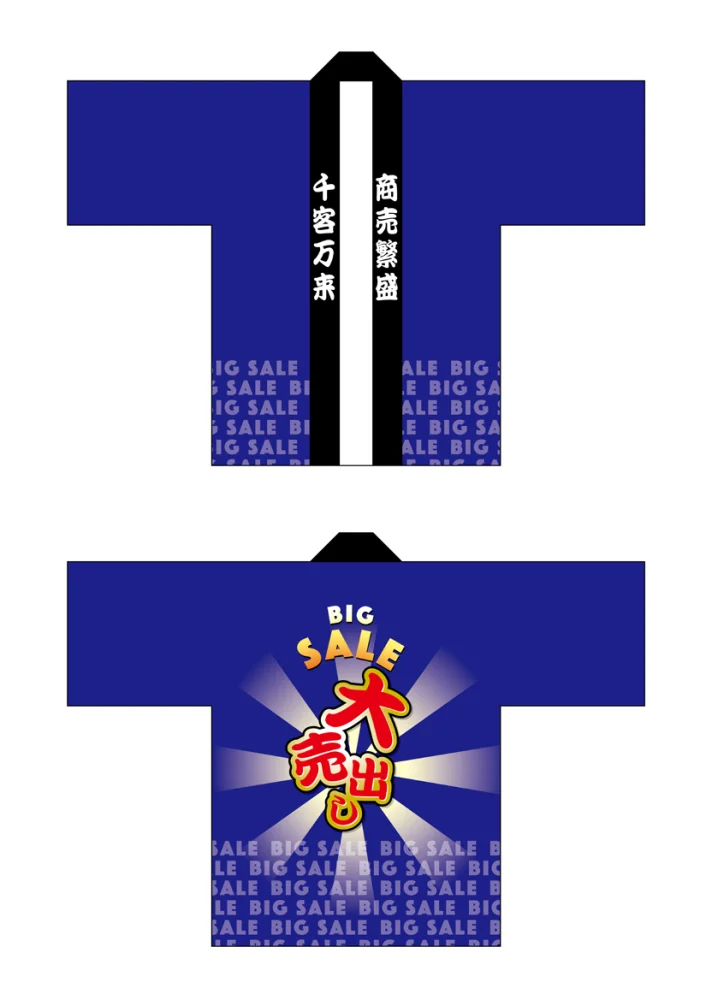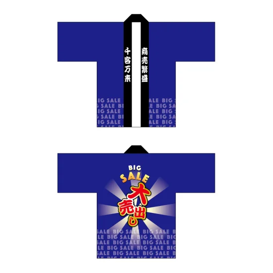 「フルカラーハッピ 69849 BIG SALE 大売り出 (受注生産)」の導入をご検討中ですか? 大量注文・複数台のご検討に応じたお見積りのご相談、最短納期や送料、仕様・サイズの確認など、 半被(はっぴ)選びをまとめてサポートいたします。