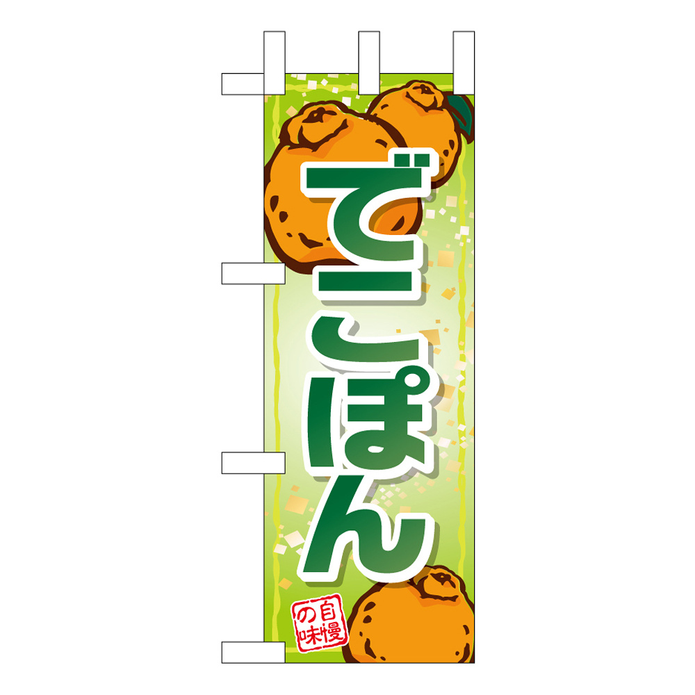 商品説明:ミニのぼり旗 でこぽん 自慢の味 W100×H280mm (45095)