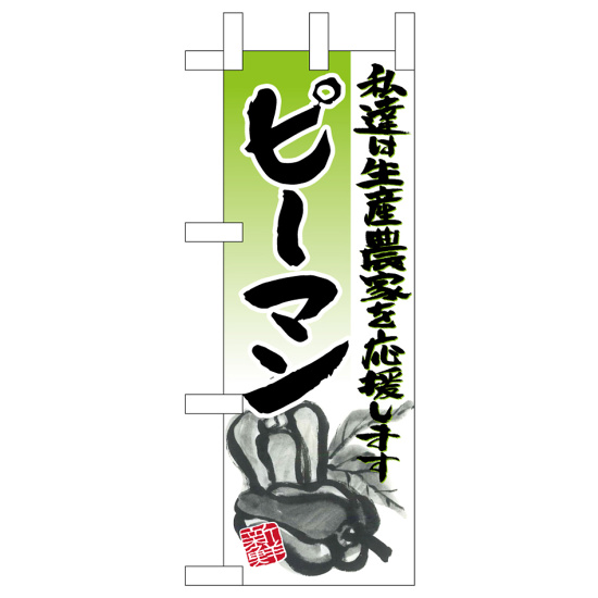 商品説明:ミニのぼり旗 ピーマン イラスト W100×H280mm (45134)