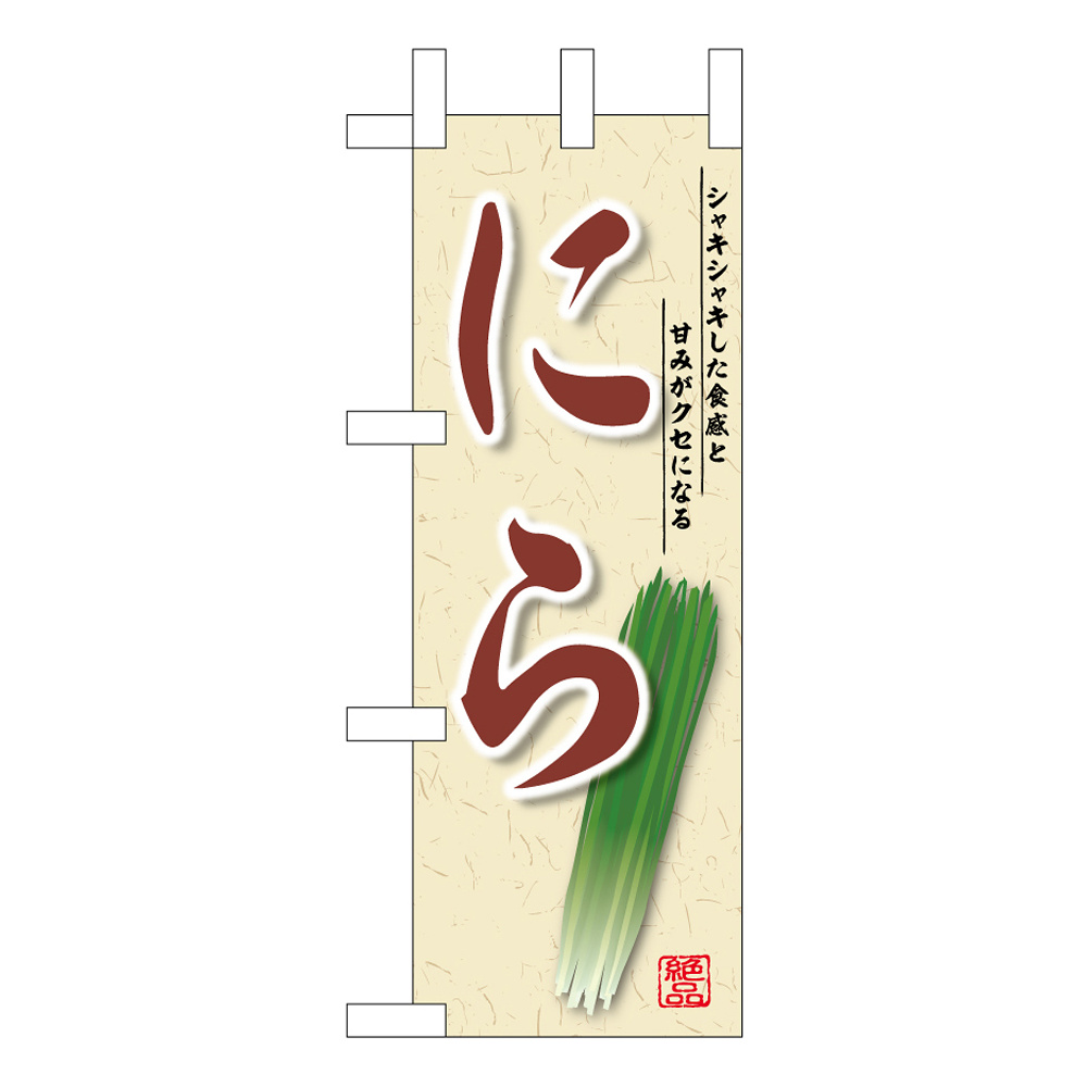 商品説明:ミニのぼり旗 にら シャキシャキとした食感 W100×H280mm (45142)