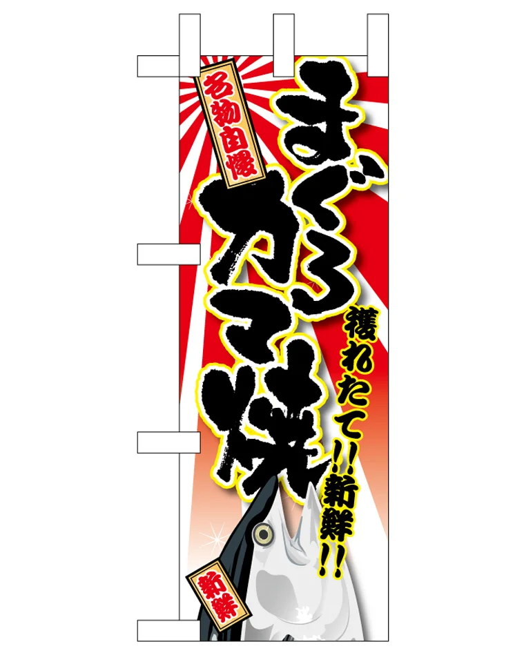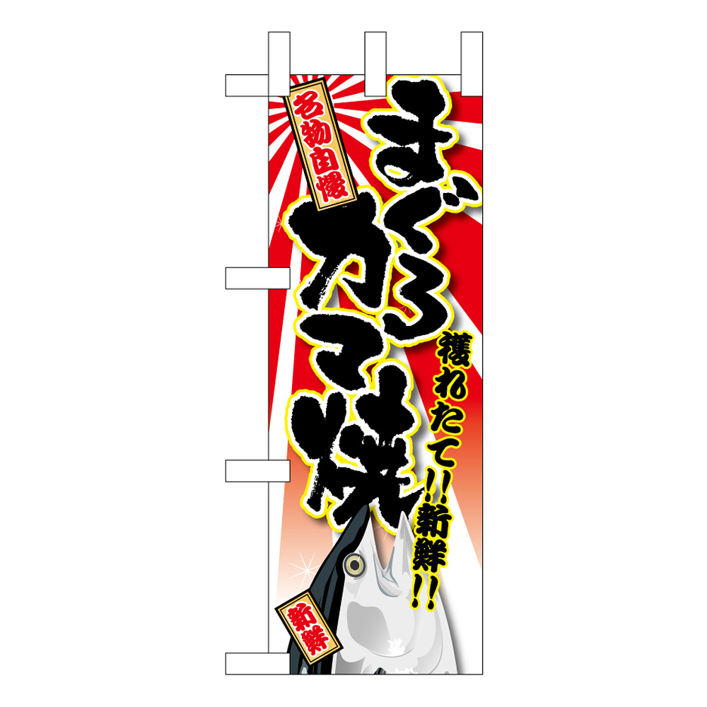 ミニのぼり旗 まぐろカマ肉 獲れたて!!新鮮!! イラスト W100×H280mm (45147)