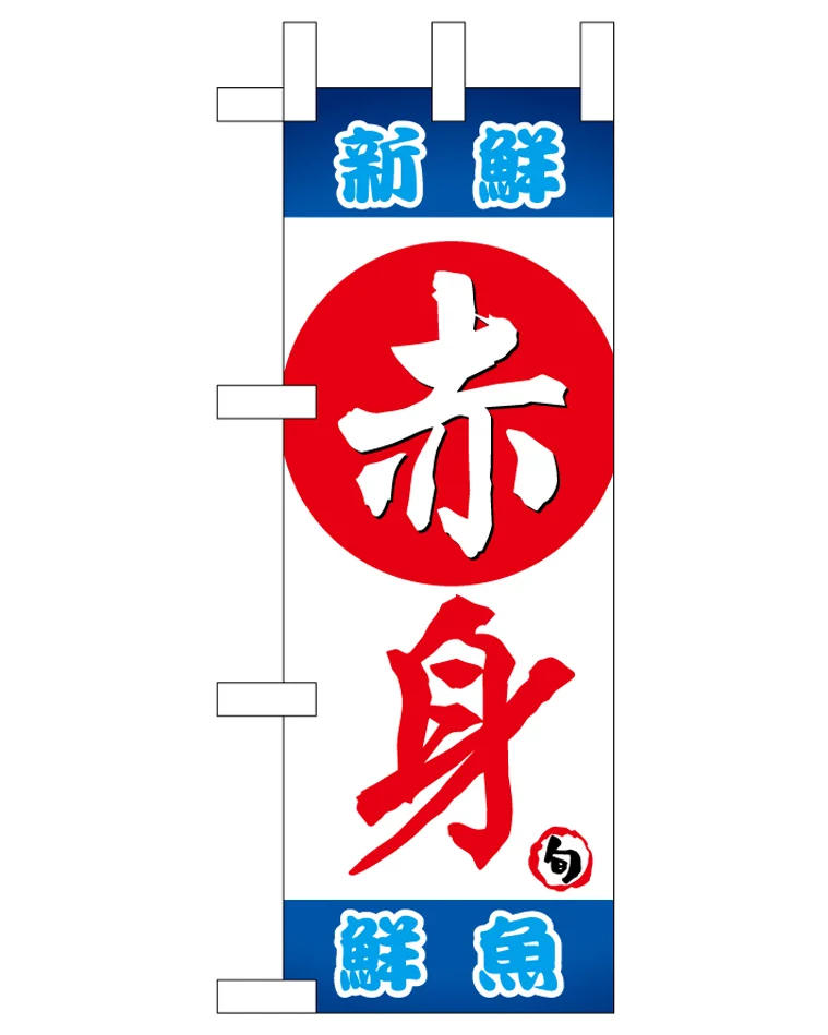 ミニのぼり旗 赤身 新鮮 鮮魚 W100×H280mm (45148) の商品詳細
