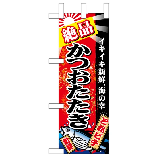 ミニのぼり旗 絶品かつおたたき 赤地 W100×H280mm (45154) の商品詳細