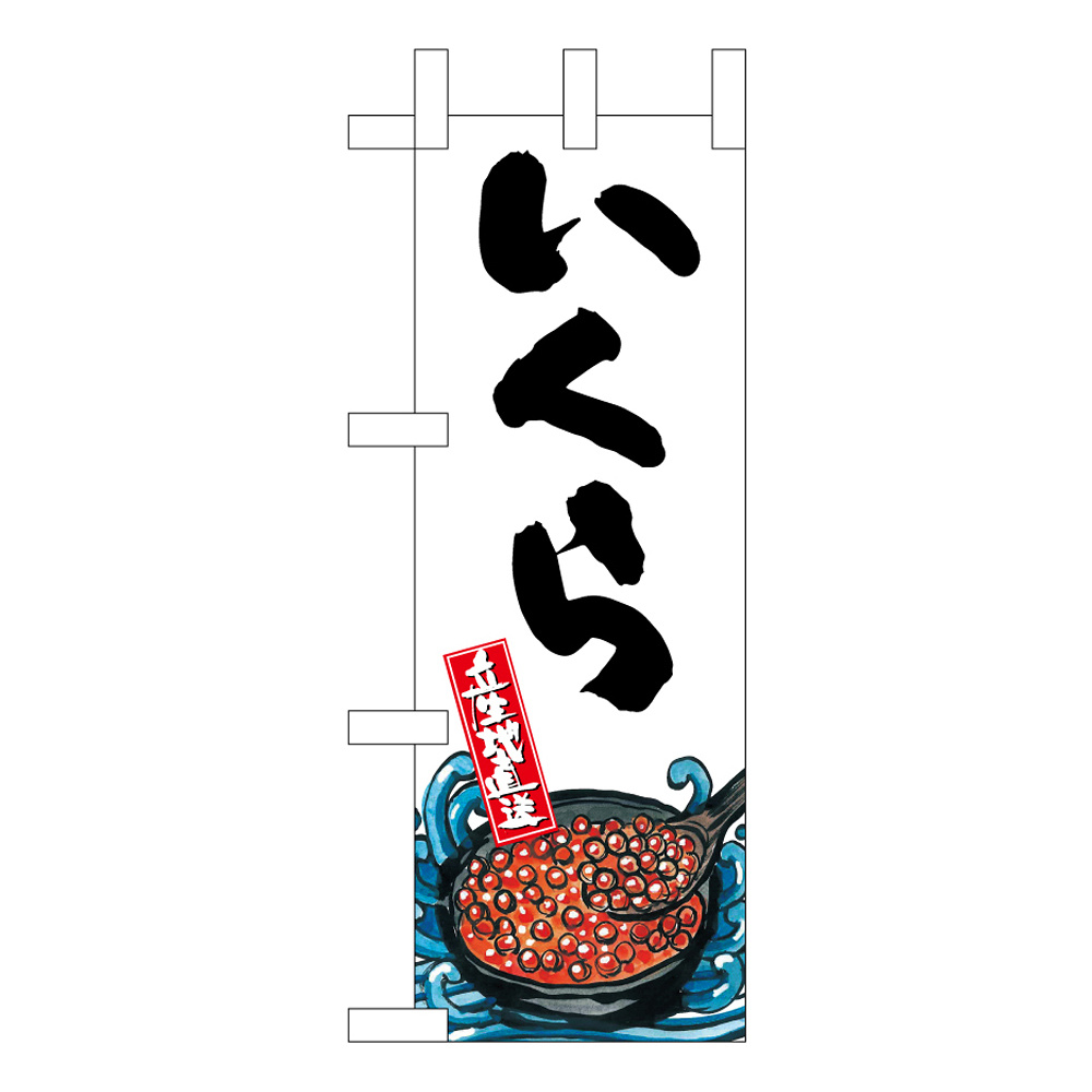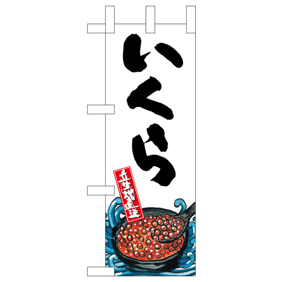 商品説明:ミニのぼり旗 いくら 産地直送 白 W100×H280mm (45185)