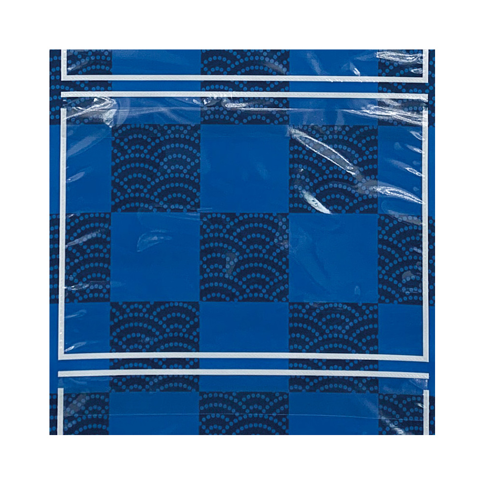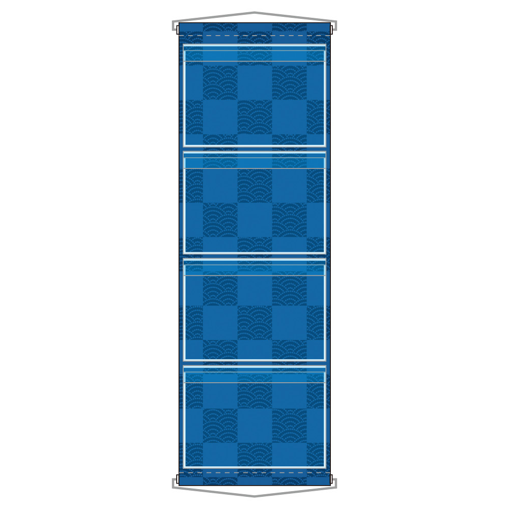 商品説明:ウォールポケット A4ポケット×4段 ヒモ付き 格子波柄 (46286)