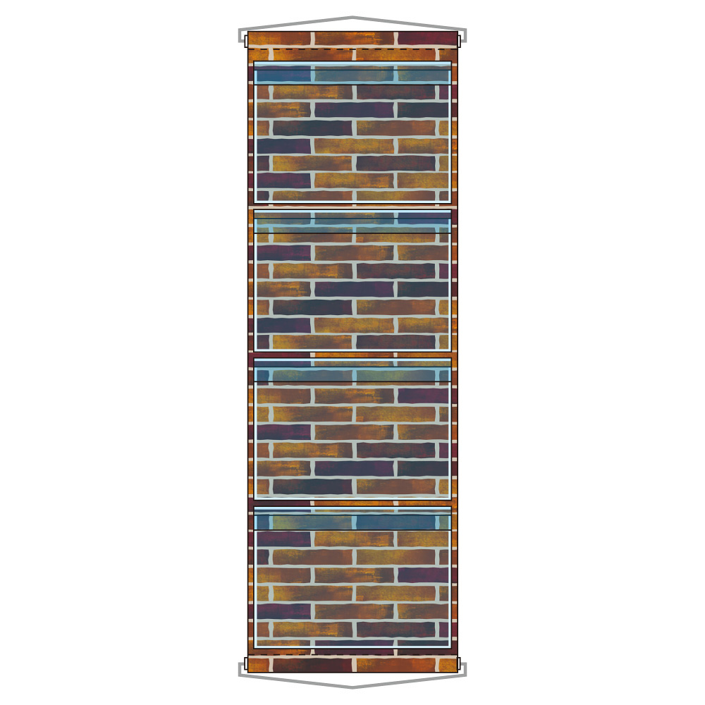 商品説明:ウォールポケット A4ポケット×4段 ヒモ付き レンガ調 (46291)