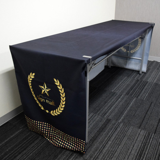 - ■前掛けタイプ:側面のない前掛けタイプは、正面と天板のみをカバーするテーブルクロスになります。最もコストパフォーマンスに優れたテーブルクロスで、テーブルサイズは毎回変わる場合や側面のカバーが不要な場合にオススメの一番簡易的なテーブルクロスです。