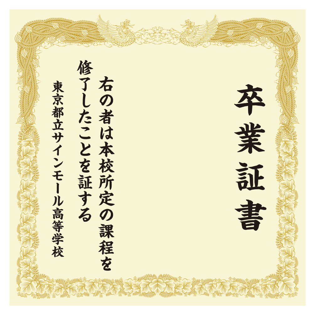 【デザインNo.2-1】卒業証書風デザイン フォトスポット背景幕 背景クリーム色 印刷製作代 3×3タイプ用 (※本体別途) トロマット(2枚つなぎ) 正面のみ 本体同時購入用