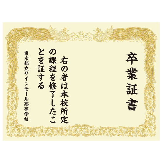 卒業証書をモチーフにしたバックパネル用背景幕。卒業式や入学式の撮影スポットに最適なデザインです。卒業生たちが立つと、まるで本物の卒業証書のような雰囲気を演出します。