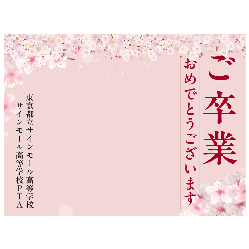 【デザインNo.4-2】卒業式向けフォトスポット背景幕 さくら満載デザイン 印刷製作代 3×4タイプ用 (※本体別途) トロマット(2枚つなぎ) 正面のみ 本体同時購入用