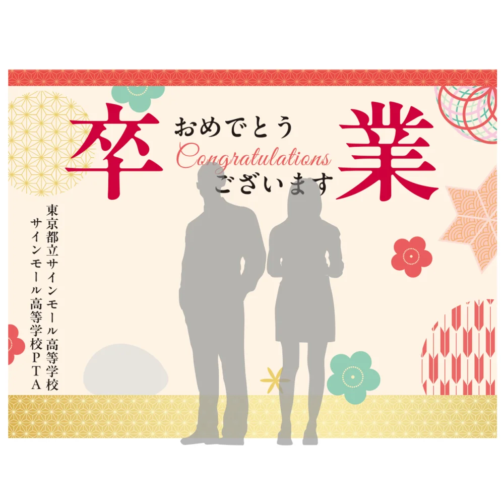 卒業式の記念撮影用フォトスポットに。めでたい和柄デザインで卒業という大切な瞬間を華やかに彩り、素敵な思い出を作るお手伝いをします。