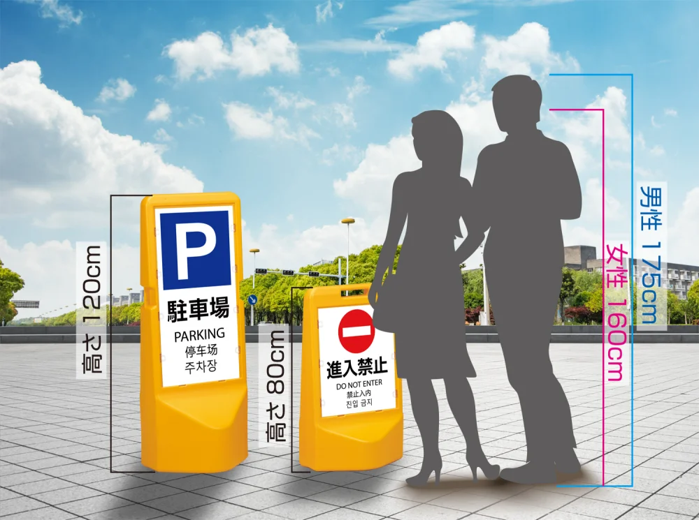 - 高さ120cmでしっかり目立つ樹脂製スタンド看板。
