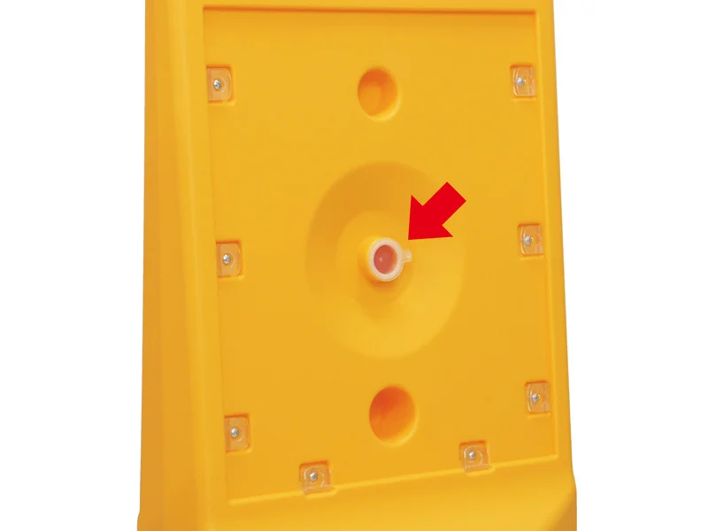 ■注水口は表示板を外した本体中央に設置されています。ホースを用いて注水します。※写真はテトラスタンド80