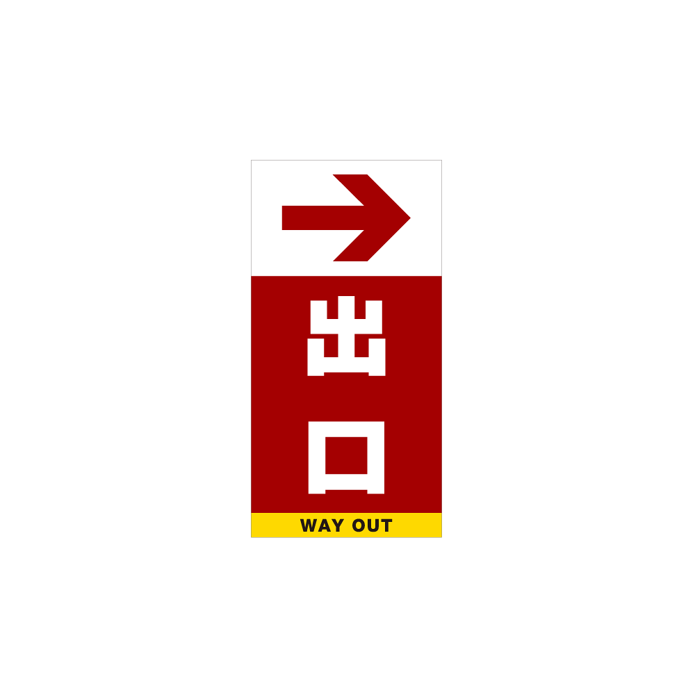 - 大きな矢印で出口までお客様を誘導する出口サイン。