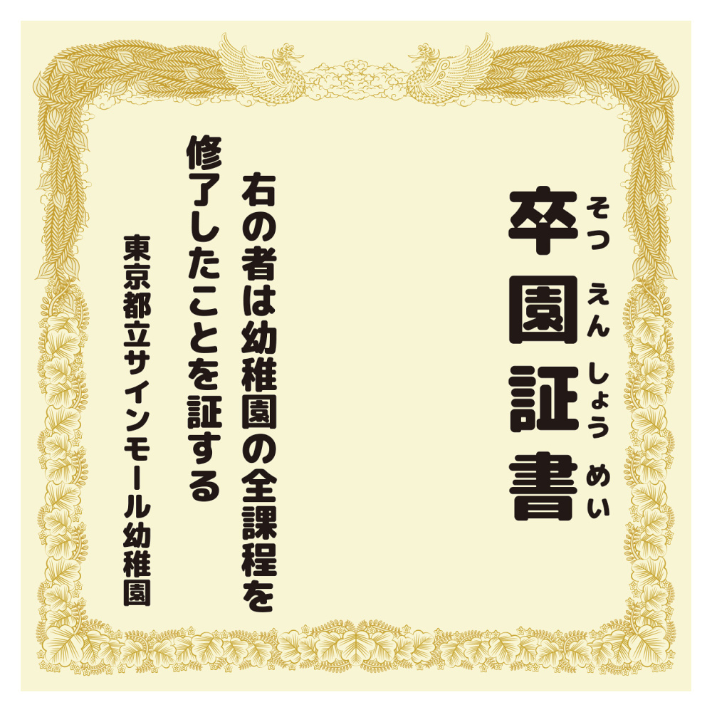 【デザインNo.9-1】幼稚園 卒園証書風デザイン フォトスポット背景幕 背景クリーム色 印刷製作代 3×3タイプ用 (※本体別途) トロマット(2枚つなぎ) 正面のみ 本体同時購入用