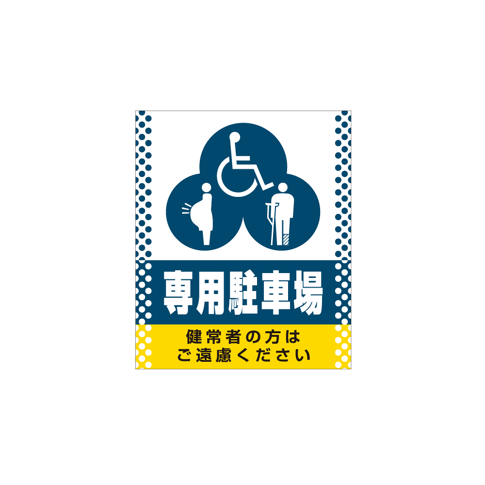- 身障者の方や妊婦さん、体が不自由な方のための駐車スペースの確保に。移動も楽な小型サイン目立つドット柄デザイン。