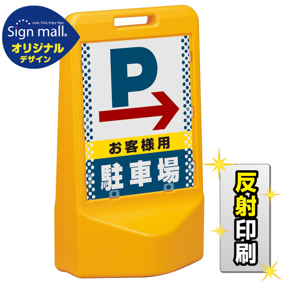 商品説明:テトラスタンド80 ドット柄 右矢印+お客様駐車場 片面 (反射出力) SMオリジナルデザイン