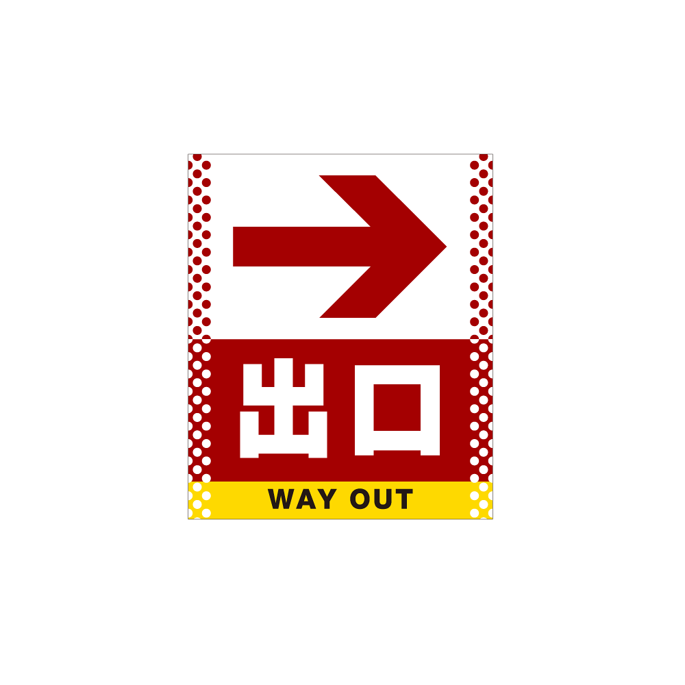 - 大きな矢印で出口までお客様を誘導する出口サイン。目立つドット柄デザイン。