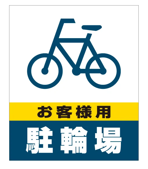 - 自転車で来店されるお客様をお出迎えする駐輪場案内看板。省スペースでもしっかりアピール。