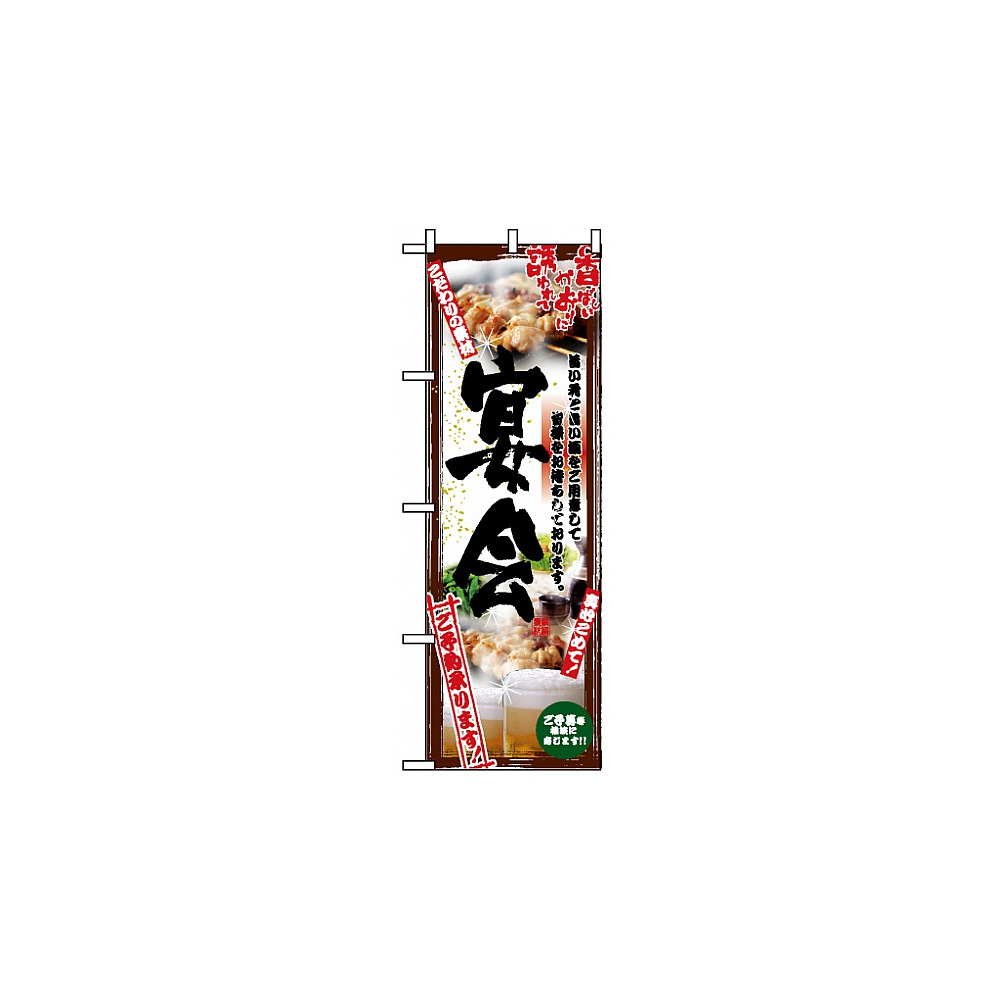 のぼり旗で、居酒屋を始め飲食店の宴会(忘年会、新年会や歓送迎会、パーティーや飲み会)をPR! 宴会シーズンには欠かせないのぼり旗!宴会のぼり旗でお店を盛り上げよう。