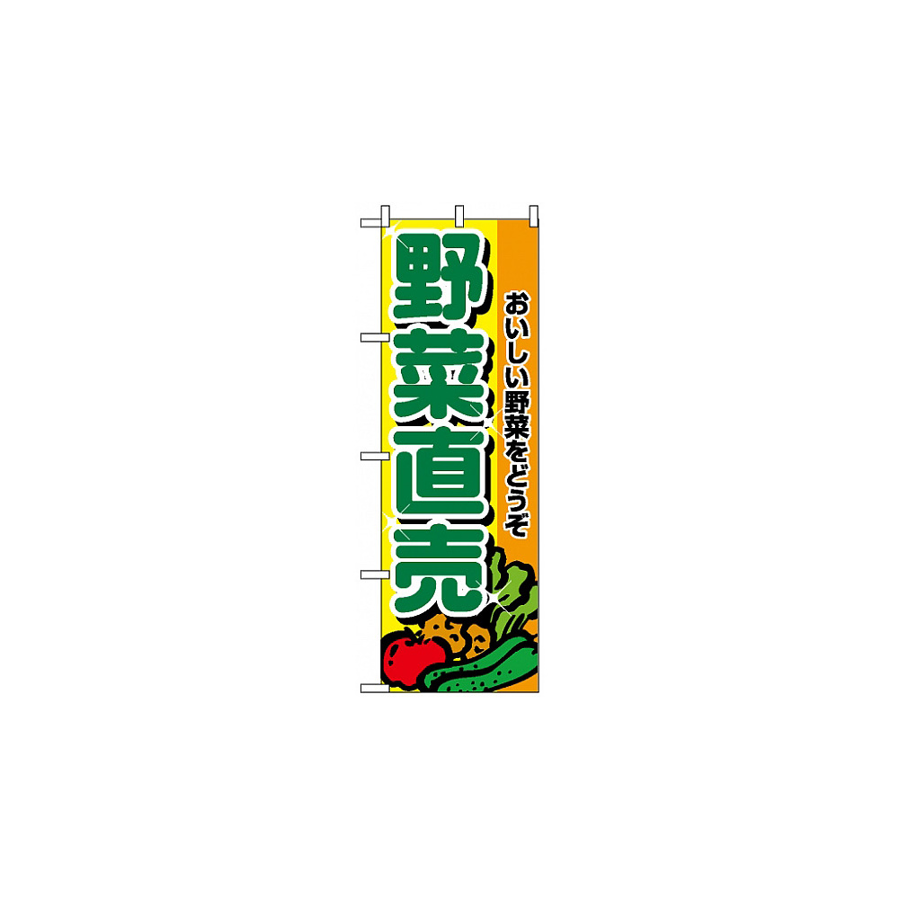 「のぼり旗 (2901) 野菜直売」の導入をご検討中ですか? 大量注文・複数台のご検討に応じたお見積りのご相談、最短納期や送料、仕様・サイズの確認など、 野菜・果物 直売所 のぼり旗選びをまとめてサポートいたします。