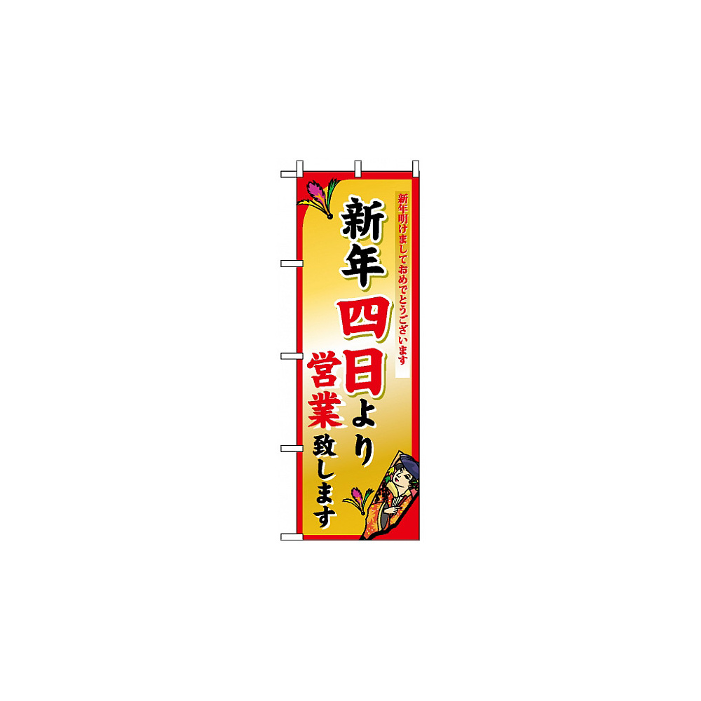 「のぼり旗 (8249) 新年四日より」の導入をご検討中ですか? 大量注文・複数台のご検討に応じたお見積りのご相談、最短納期や送料、仕様・サイズの確認など、 歳末・迎春・初売り のぼり旗選びをまとめてサポートいたします。