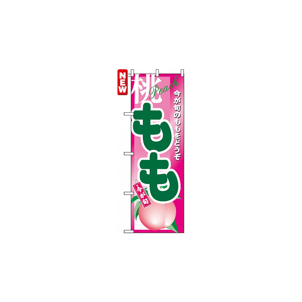 今が旬のももをアピールするのぼり旗です。 農園の直売所や即売所、イベントや果物狩り、味覚狩り会場をPRにぜひ。 道端でもしっかり目立ちます。