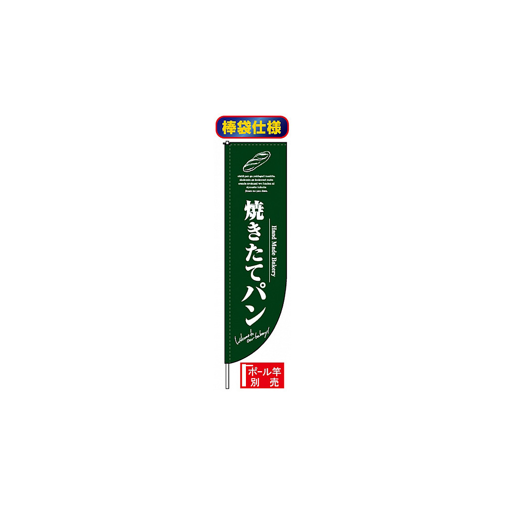 商品説明:Rのぼり旗 (棒袋仕様) (3066) 焼きたてパン 緑