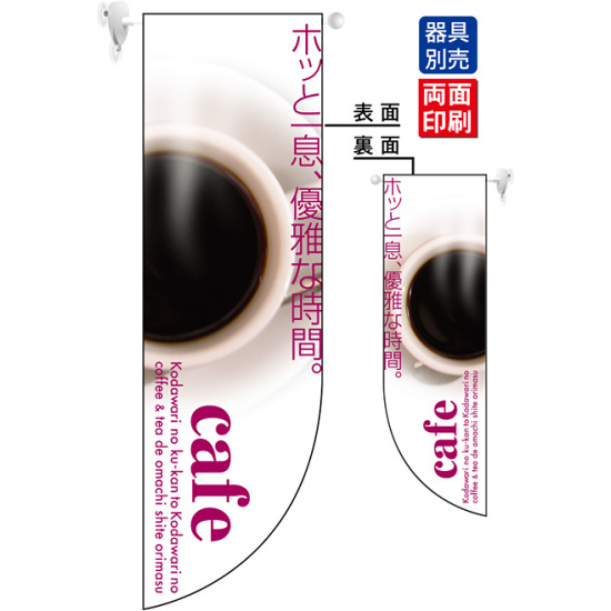 ホッと一息、優雅な時間 cafe フラッグ(遮光・両面印刷) (6049)