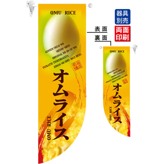 高さ850mmのロングタイプの高級遮光スエード素材に両面印刷した本格派販促フラッグ。表示内容「オムライス」