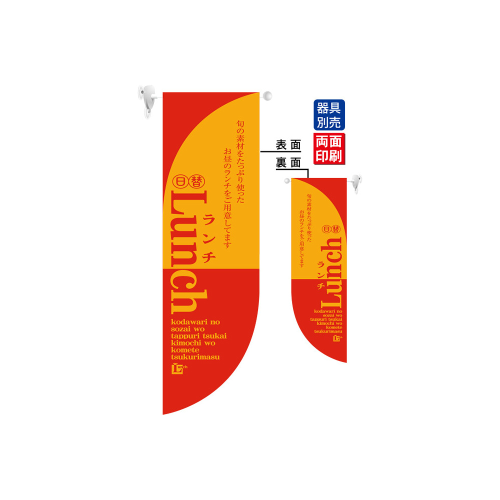 日替わりランチ LUNCH (赤) フラッグ(遮光・両面印刷) (6024)