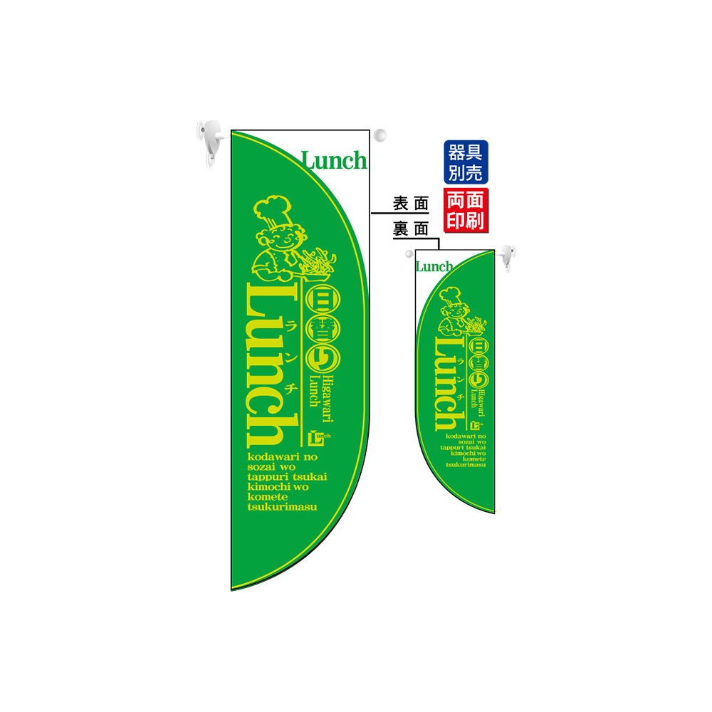 日替わりランチ LUNCH (黄緑) フラッグ(遮光・両面印刷) (6026)