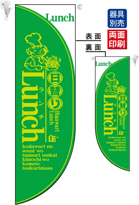 日替わりランチ LUNCH (黄緑) フラッグ(遮光・両面印刷) (6026) の商品詳細
